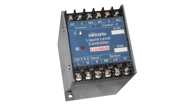- Sensor Input : Reference, Low & High Inputs are provided to Sense Lower & Higher Level of Water in the Tank. These Inputs are having very High Input Impedance protecting from De-ionizing, which happens in most of Other Makes of LLC. We have Designed LLC system in such way, Reference can be mounted on the Vessel Body. It has been observed that if More than one LLC is used in the same Vessel there is always some malfunction. We at SILITRONIX have designed Our LLC in a novel way that it is possible to use number of LLC and connecting reference of all LLC with the same Vessels Body. Even if negative of Input 24 V D.C. Supply accidentally gets connected to your Vessel's Body, Performance of our LLC will not be affected.